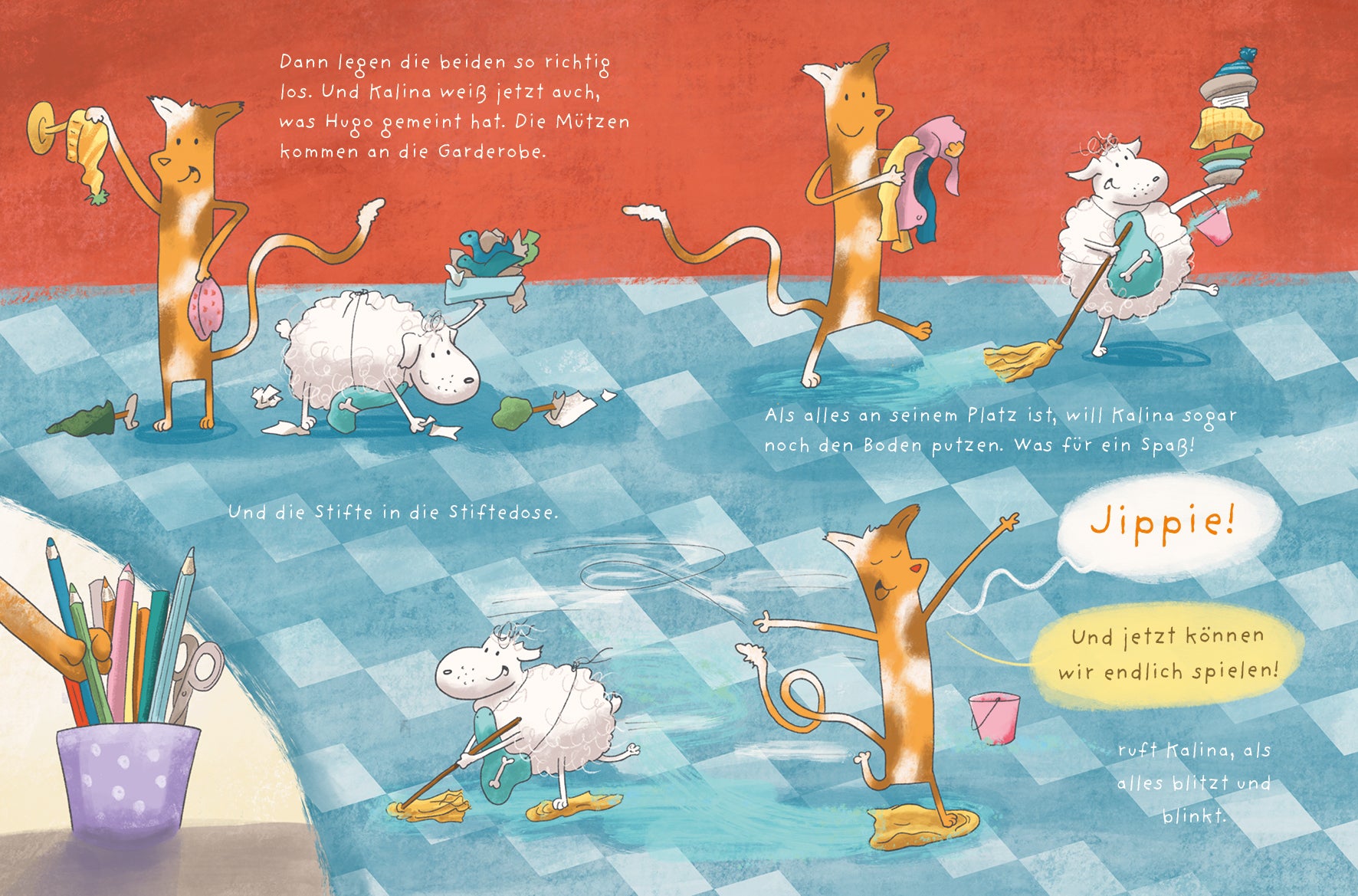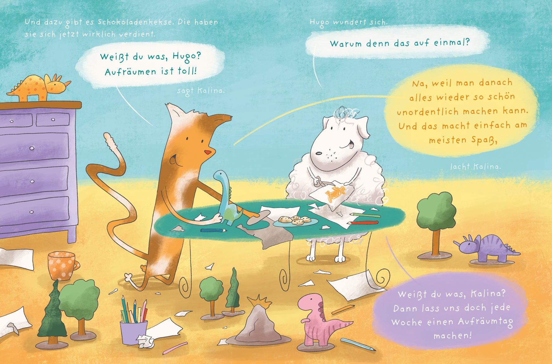 Sandra Laufer, KJM-Kinder- und Jugendmedien Bern„Jedenfalls lebt eine echte Freundschaft auch von Kompromissen, wie Kinder in diesem witzigen Bilderbuch erfahren. Und wer weiß? Vielleicht gehen Aufräummuffel und Putzbegeisterte ihren Aufräumtag demnächst konzentrierter oder entspannter an.“