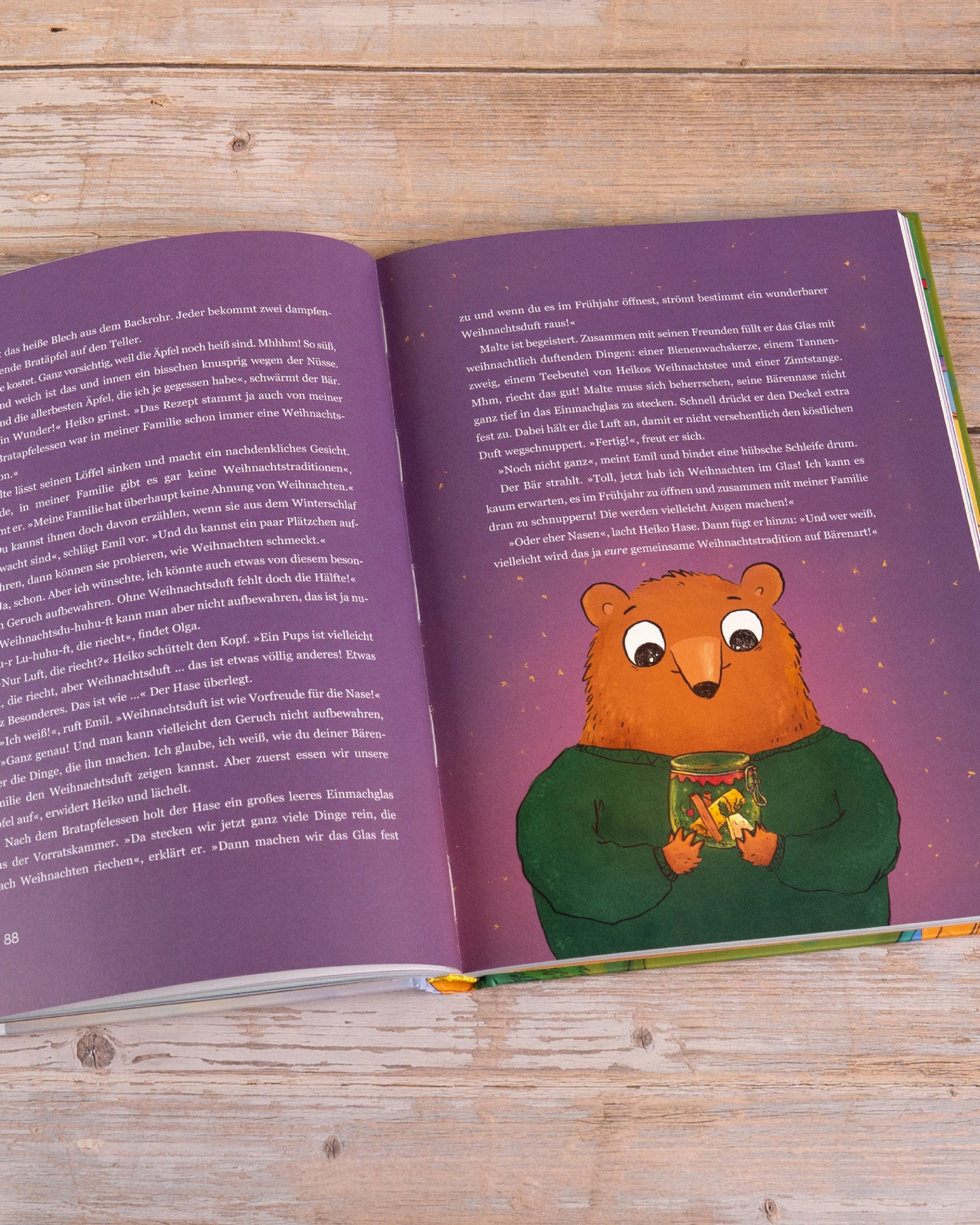 „Dieses Buch kann man, da es in 24 Kapitel eingeteilt ist, richtig gut als Adventskalenderbuch nutzen. Jedes Kapitel hat eine passende Überschrift und die Kapitellängen sind perfekt zum Vorlesen geeignet. Besonders gut gefällt mir aber auch die ganze Aufmachung. Die Farbgestaltung, die vielen bunten und wunderschönen Illustrationen. Ich bin einfach hin und weg.“