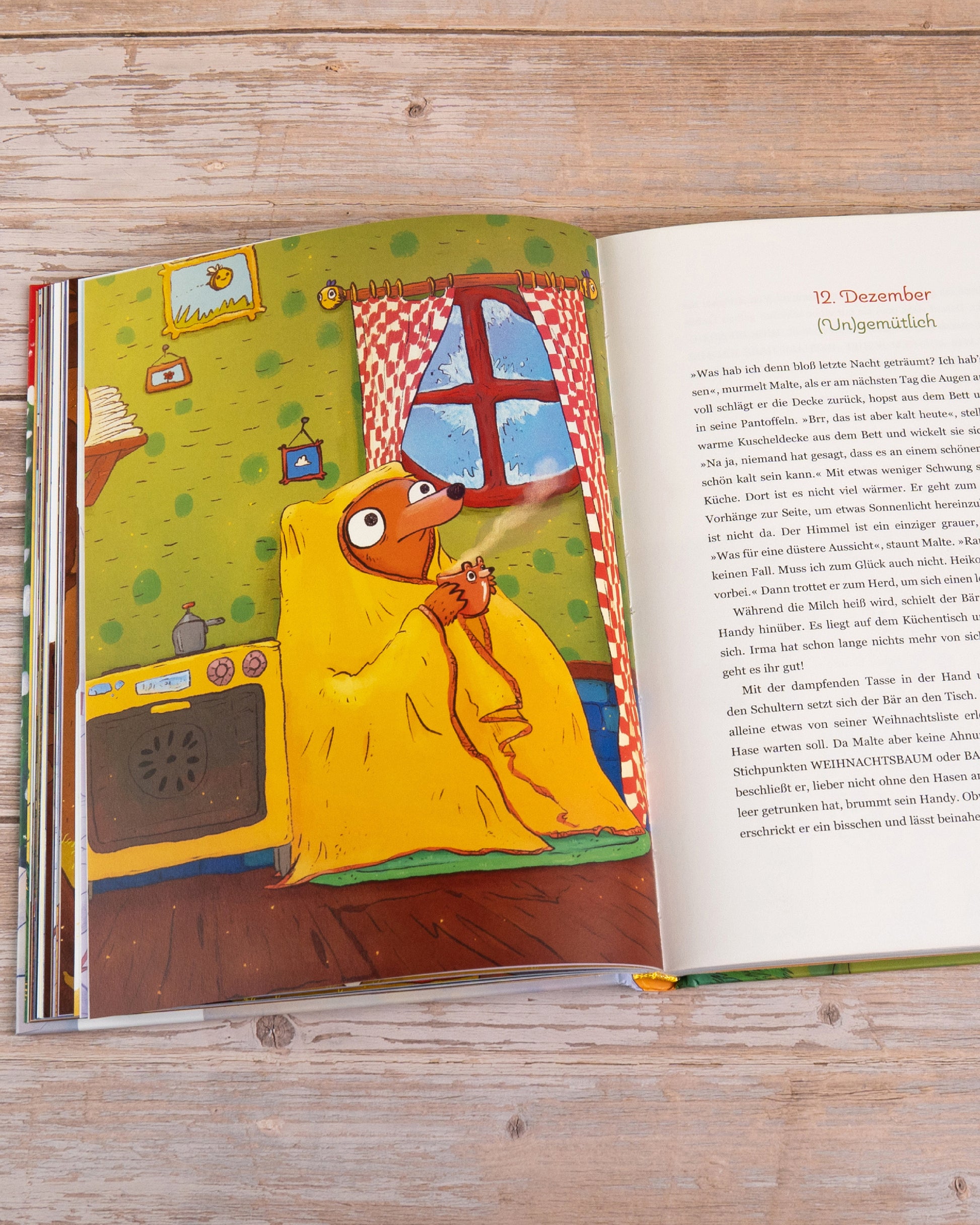 „Das Buch ist lustig, warmherzig und perfekt zum Vorlesen für die Adventszeit, es ist unterteilt in 24 Kapitel. In jedem Kapitel lernt man Neues über Weihnachten und die Bräuche im Advent und man kann gemeinsam mit dem Bären rätseln, welche Überraschung er Irma Eisbär versprochen hat. Toll!“
