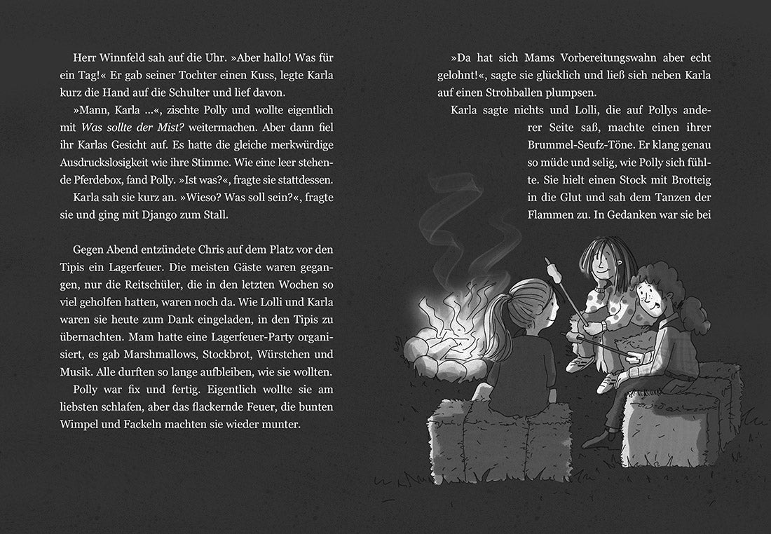 Reiterferien auf der Hufeisen-Ranch – Nur zusammen ist man stark! Polly freut sich riesig auf die Reiterferien zuhause auf der Hufeisen-Ranch. Eine Woche lang dreht sich alles nur um Ponys – von morgens bis abends! In Emma findet Polly auch gleich eine neue Freundin. Aber warum gibt es plötzlich so viele Sticheleien zwischen den Ferienkindern? Noch dazu verhält sich Smoky, Pollys Pony, ziemlich bockig. Polly ist verzweifelt – so hatte sie sich die Reiterferien ganz bestimmt nicht vorgestellt! Sie muss sich dringend etwas einfallen lassen …