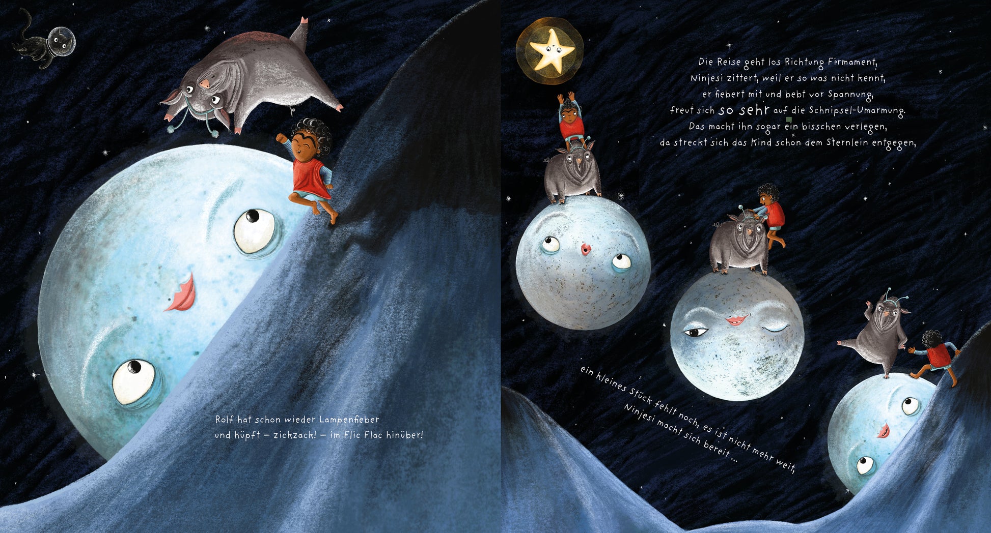 Sonja B.-F., NetGalley„Es ist eine zarte, poetische Geschichte, die in liebevollen Reimen erzählt wird und sofort mitten ins Herz trifft – bei Kindern und Erwachsenen gleichermaßen (...) Besonders wohltuend ist, dass dieses Buch auf Rollenklischees verzichtet. Es geht nicht um Junge oder Mädchen, sondern einfach um ein Kind – das genügt. Die Sprache ist liebevoll und klar, die Reime fließen mühelos, und die farbenfrohen Illustrationen laden zum Verweilen und Entdecken ein. Jede Seite ist eine kleine Welt für sich, in der man sich verlieren kann.“