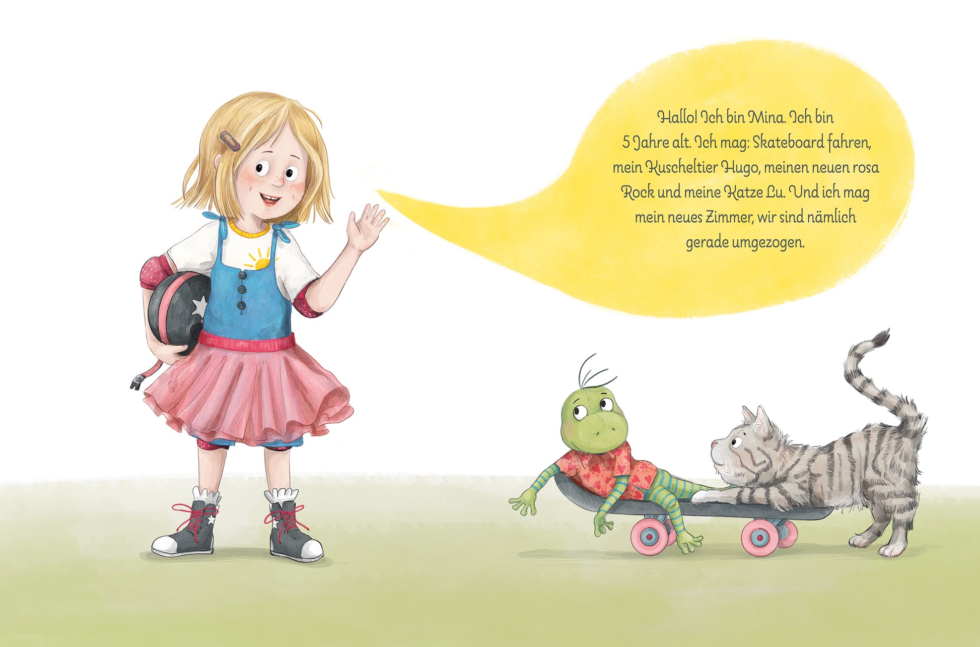Finea, Lovelybooks„Eine sehr realistisch gezeichnet und auch beschriebene Geschichte, natürlich ist so ein Umzug mit Kita-Wechsel immer schwierig und auch die Eltern tun sich da schwer. Da gefällt mir Minas Idee, alle Kinder mal zu besuchen sehr gut.“