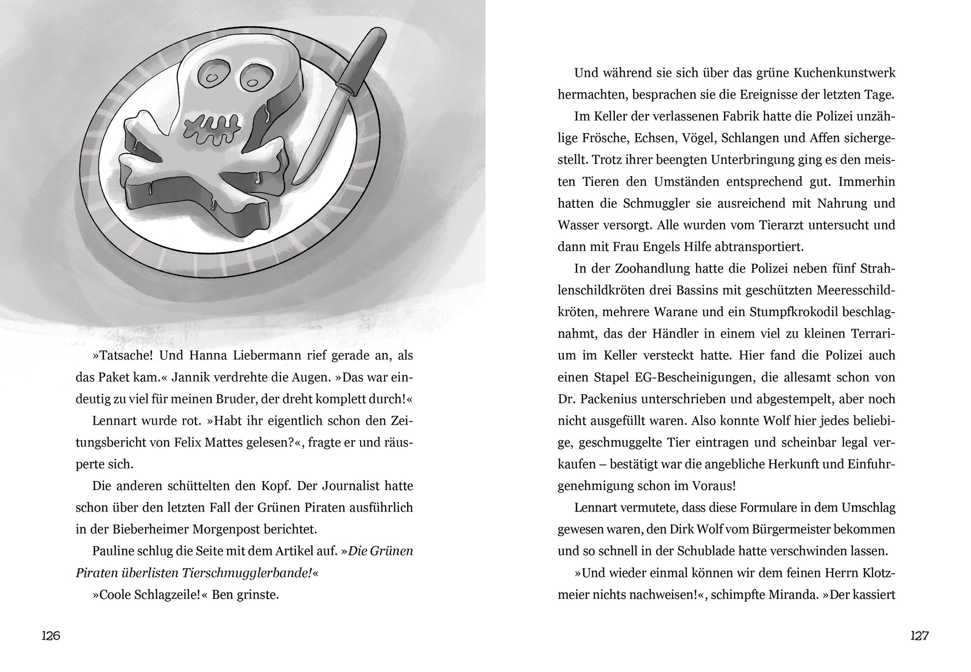 Die Grünen Piraten – so nennen sich die Freunde Pauline, Ben, Flora, Lennart und Jannik. Da, wo sie zum Schutz der Umwelt eingreifen, bleibt als Zeichen der grüne Totenkopf zurück. Bei ihren heimlichen Einsätzen kommen sie immer wieder in brenzlige Situationen.