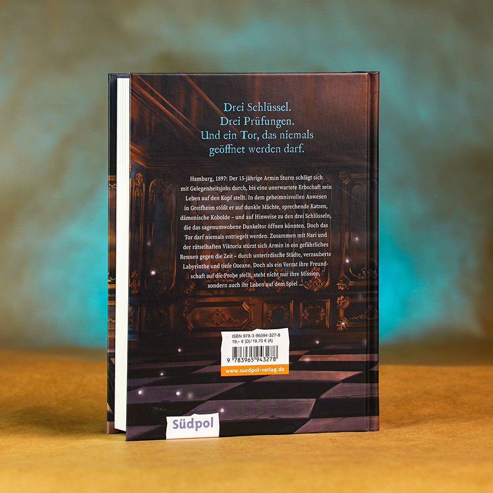 Hamburg, 1897: Der fünfzehnjährige Armin Sturm schlägt sich mit Gelegenheitsjobs durch, bis eine unerwartete Erbschaft sein Leben auf den Kopf stellt. In dem geheimnisvollen Anwesen in Greifheim entdeckt Armin, dass Magie real ist – und dass sein Vater von dunklen Mächten kontrolliert wird. Um ihn zu retten, muss Armin drei magische Schlüssel finden, die ein finsteres Tor verschließen: den Druidenschlüssel in den Tiefen des Ozeans, eine Dornenkrone im unterirdischen Reich der Steinschrate und ein magisches Schwert im endlosen Spiegellabyrinth. Gemeinsam mit der mutigen Nari und der Halbelfe Viktoria stellt sich Armin einer finsteren Bedrohung – und seiner eigenen Bestimmung …