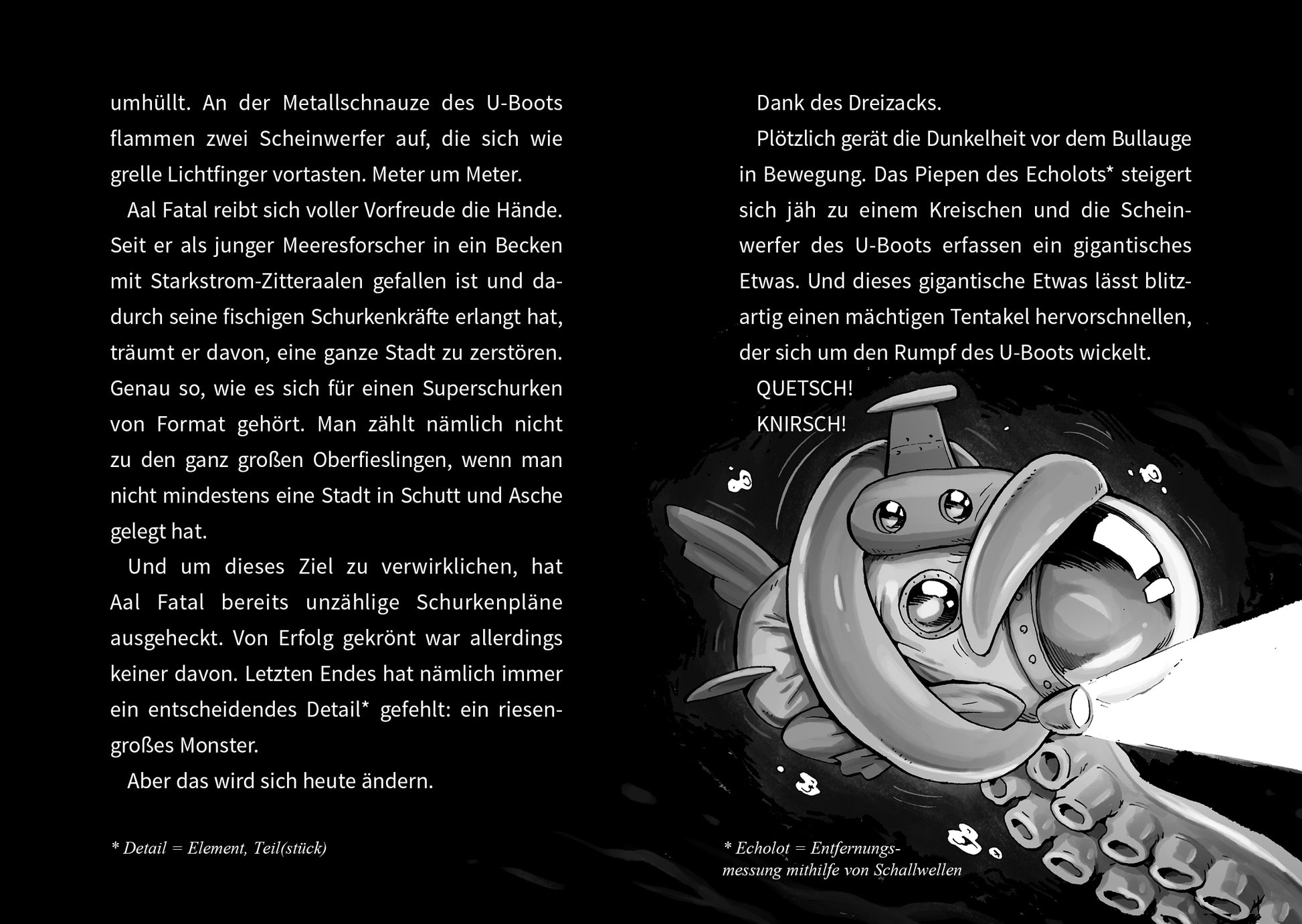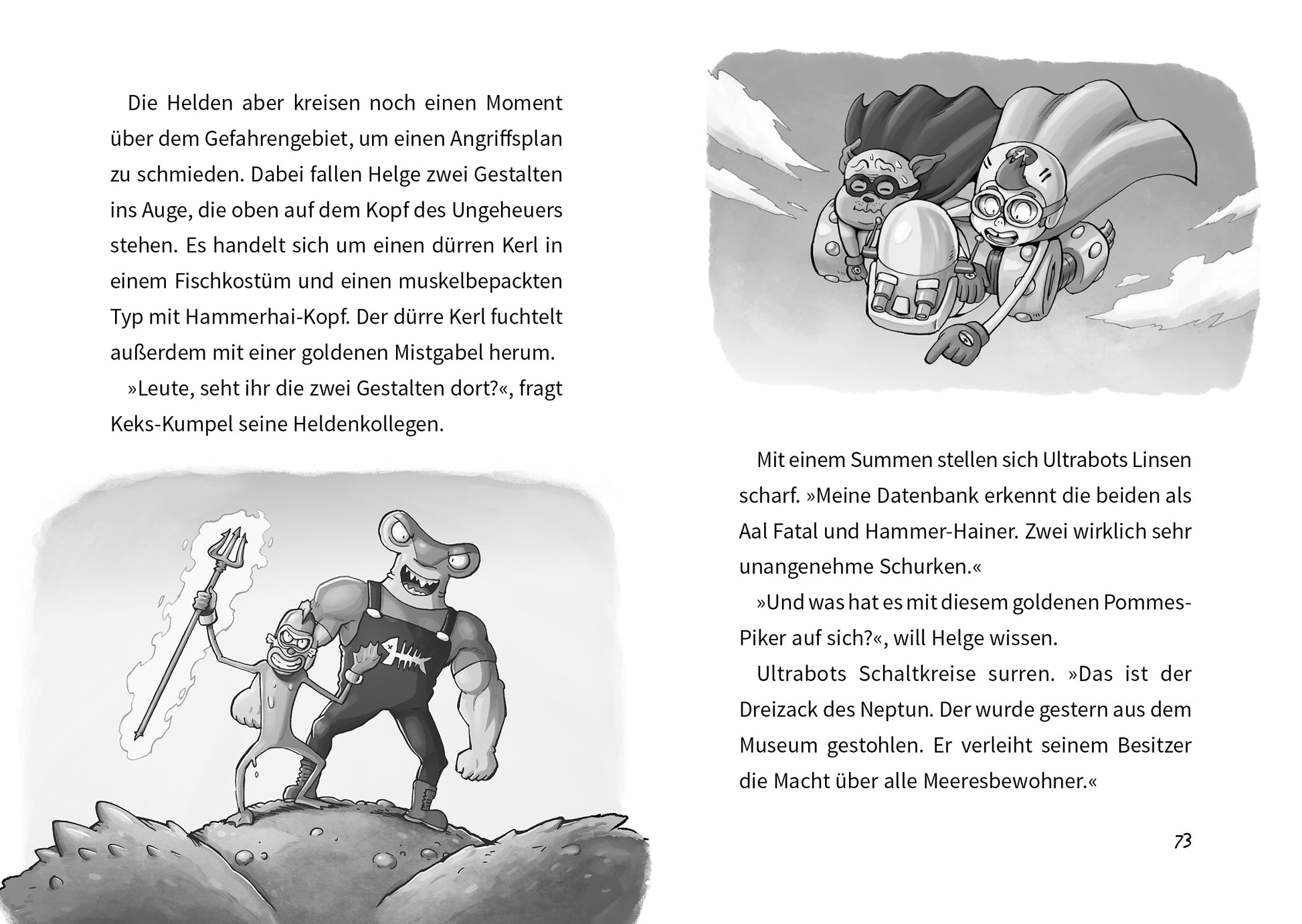 Drei Helden sind einer zu viel oder – genau richtig! Helge ist sauer: Ein fliegender Roboter ist plötzlich immer dort zur Stelle, wo Gefahr droht und stiehlt Supermops und ihm die Schau. Drei Helden in einer Stadt sind eindeutig zu viel! Sie brauchen ganz dringend ein neues, bombastisches Heldenabenteuer, um den Roboheld auszustechen. Und das kommt schneller, als sie denken, denn Aal Fatal, der fischige Fiesling, und sein Gehilfe Hammer-Hainer hetzen einen gigantischen Krakenkrebs auf die Stadt ...