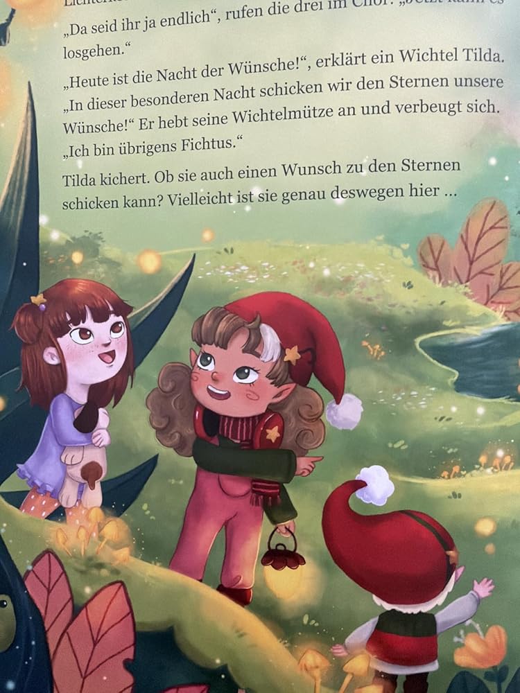 Solltet ihr Gastgeber eines Wichtels sein, ist euer magischer Freund sicher hinter einer Tür in der Wand oder in einem Häuschen versteckt. Aber wusstet ihr, dass sich einige Wichtel auch in Flaschengärten wohl fühlen? Nein? Auch wir haben davon erst über "Wichtelzauber im Flaschengarten" erfahren. Ein zuckersüß gestaltetes Bilderbuch mit einer herzerwärmenden Geschichte über Wünsche, Hilfsbereitschaft und Magie.⭐Inhalt:Eines Abends wird Tilda von einem liebevoll eingepackten Päckchen überrascht. Ein vorzeitiges Weihnachtsgeschenk? Doch von wem? Mama, Papa und auch das Mädchen sind ratlos, freuen sich aber riesig über den zauberhaft angelegten Flaschengarten, für den Tilda direkt auf ihrem Nachtschränkchen einen Platz findet."Wenn ich ein Wichtel wäre, denkt Tilda, würde ich lieber in so einem schönen Garten wohnen. In diesem Moment beginnt die Lichterkette zu flackern und ein sanfter Windhauch streift Tildas Gesicht." (Buchzitat)Und schon befindet sich das Kind auf einer Lichtung inmitten des Flaschengartens und trifft auf äußerst freundliche Wichtel, die gemeinsam mit ihr Wünsche zu den Sternen schicken möchten. doch leider geht etwas schief. Wind Pustino trägt die Wünsche nicht an ihr Ziel, sondern pustet sie wild durcheinander. Da hat Tilda eine grandiose Idee:"Wir erzählen uns unsere Wünsche und helfen uns gegenseitig, sie zu erfüllen!" (Buchzitat)Während sich Wilka wünscht, einen Wichtel-Winter-Song zu schreiben, möchte Fichtus gerne mal die Menschenwelt besuchen. Und auch Lina hegt einen tiefen Wunsch. Werden sie es schaffen, einander diese Wünsche zu erfüllen?Die Geschichte ist Magie pur und hat meine Jungs total begeistert, sodass wir auch unsere eigenen Flaschengärten basteln wollten! So haben unsere Wichtel noch zusätzlich die Möglichkeit, auf dem weichen Moos zu schlafen, die Sterne zu betrachten und Beeren im Wald zu pflücken.Vielleicht sucht ihr ja gerade eine schöne Alternative zu den sonst recht ähnlich gestalteten Wichtelbüchern, in denen die magischen Wesen den Kindern Streiche spielen. Mir gefällt diese Variante besonders gut, da sie mehr Ruhe reinbringt und dazu ermutigt, an seinen Wünschen festzuhalten. Außerdem gibt es hier nicht die Regel, dass Kinder ihre Wichtelfreunde nicht besuchen dürfen. Vielmehr knüpfen sie Freundschaft und verbringen unvergesslich schöne Momente miteinander. Allein die Vorstellung, man könne gemeinsam die Nacht im Flaschengarten verbringen und zusammen köstlichen Kakao schlürfen sowie leckere Plätzchen naschen, lädt doch zum schnellen Einschlafen und Träumen ein.Ein wirklich schönes Bilderbuch für die Weihnachtszeit, aber auch für danach, denn hier ist an keiner Stelle die Rede von Weihnachtswichteln. Manche Wichtel begleiten uns 365 Tage im Jahr. Eine wundervolle Vorstellung, oder?