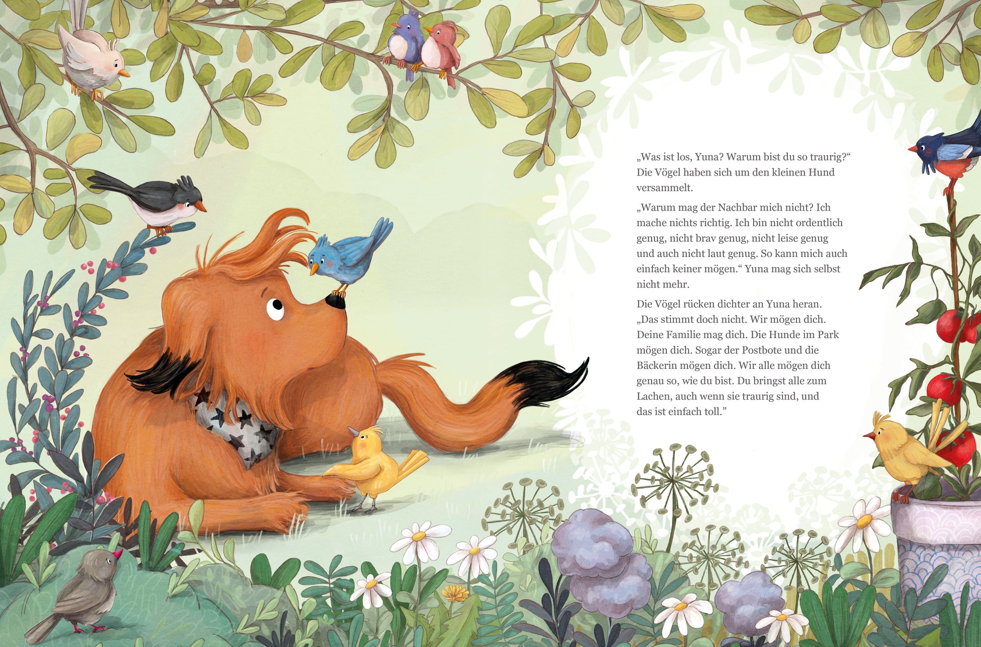Eva @evas_lesezeit„ein warmherziges, aber auch humorvolles Bilderbuch über Selbstbewusstsein - und das aus der Sicht eines kleinen Hundes. In der Geschichte und den Bildern steckt so viele Liebe, dass sich die kleinen Zuhörer:innen bestimmt schnell in Yuna und ihre Geschichte verlieben werden“